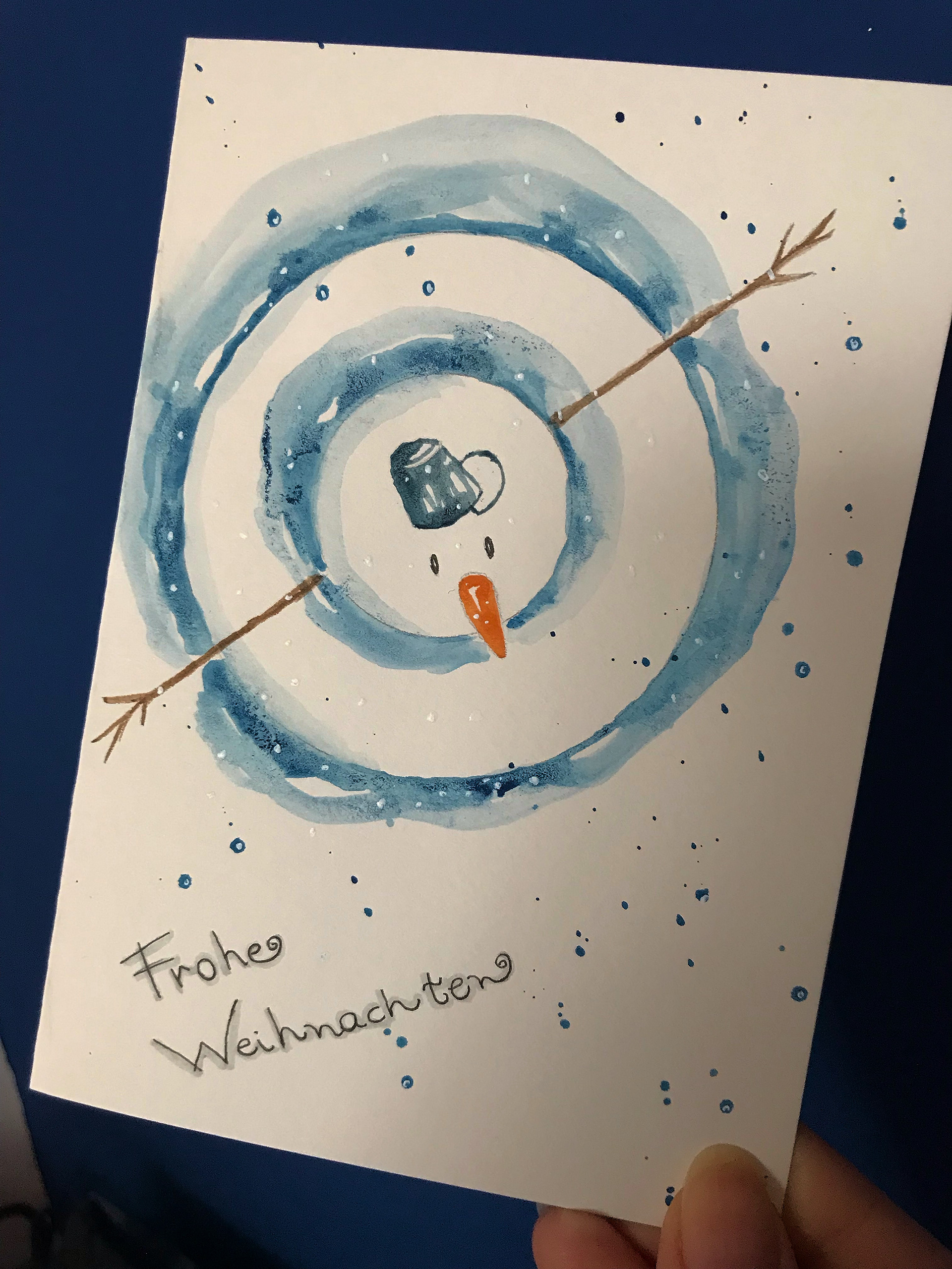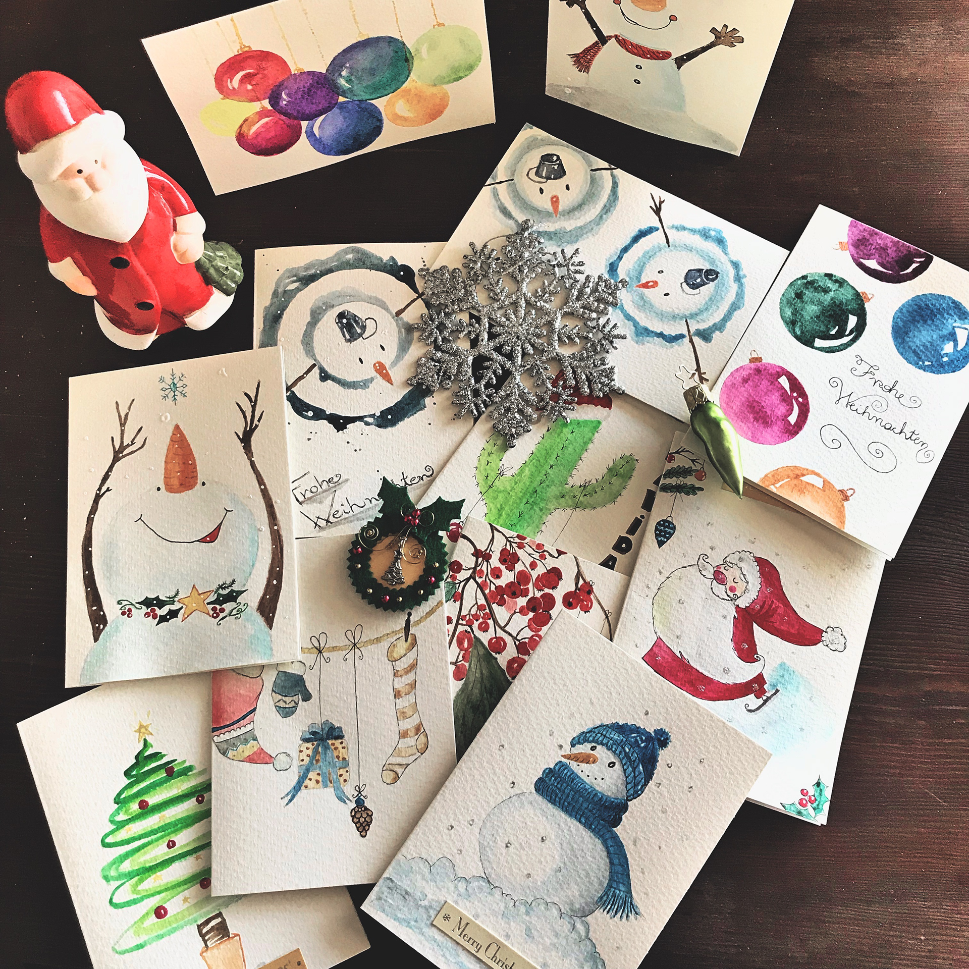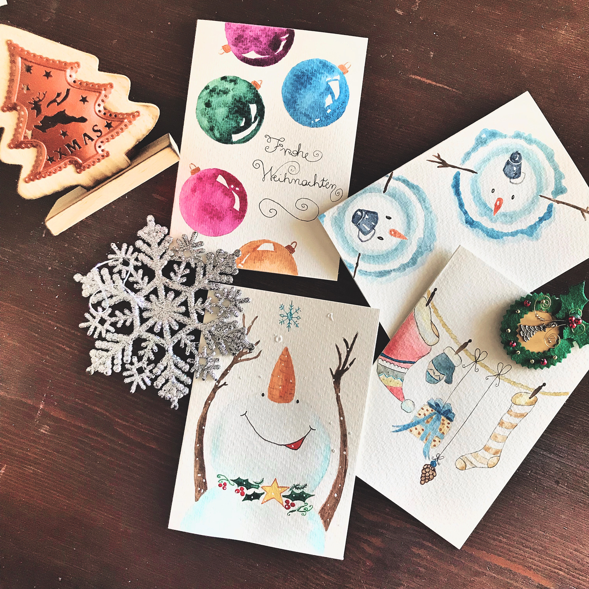 card format, painted in watercolor, and graphic pen on watercolor paper 300g.