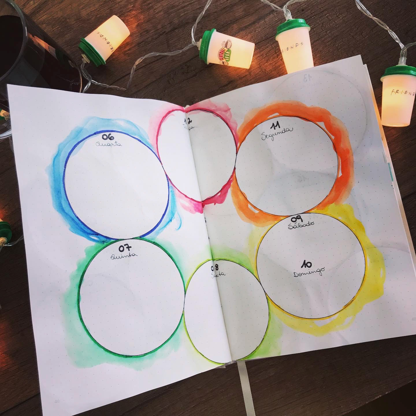 Mixed media technics including collage, watercolor, graphic pen, and colored pencils.