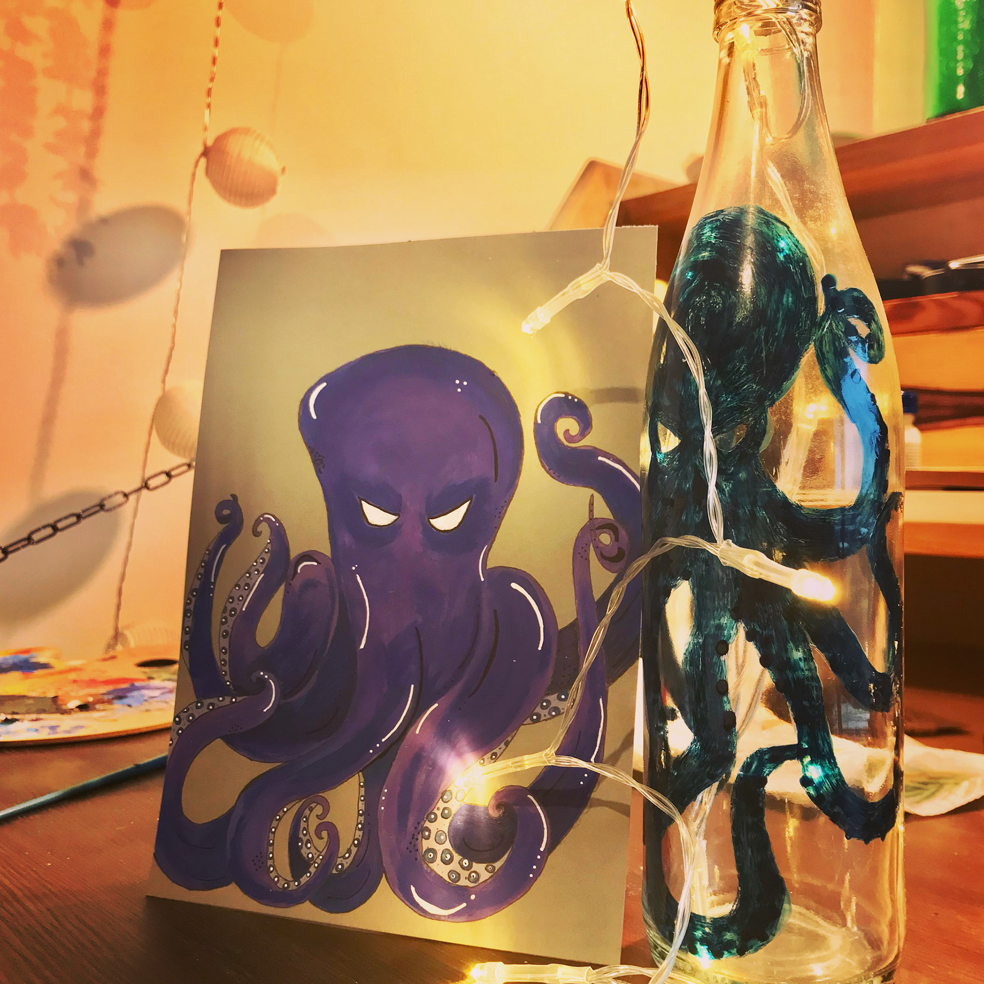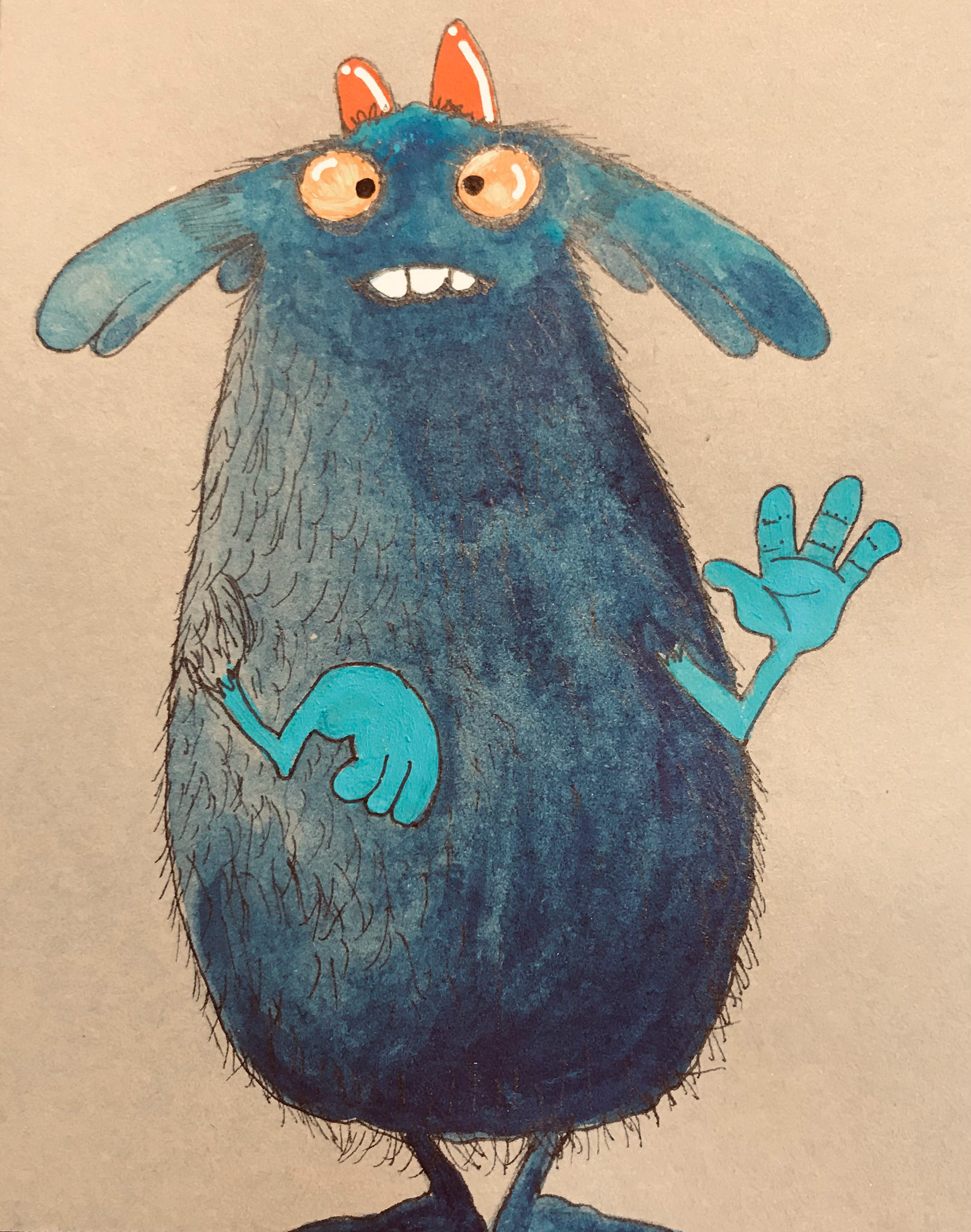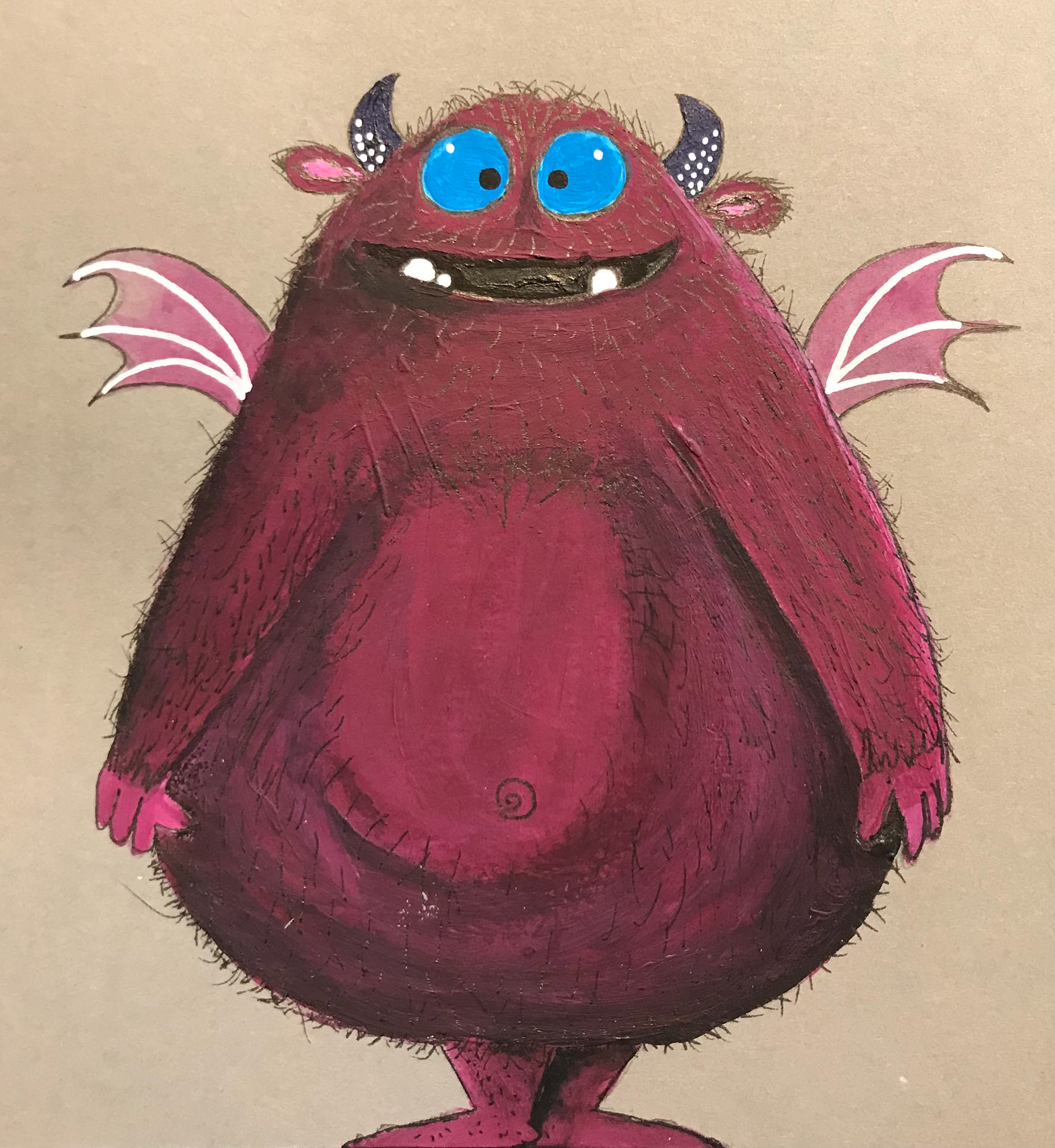They are cute little monsters painted in acrylic on grey 300g A5 paper.